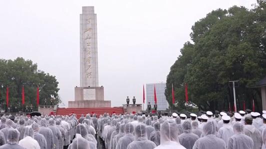 9月30日,秋风飒飒,细雨霏霏。宜昌市举行烈士纪念日向英雄烈士敬献花篮仪式。