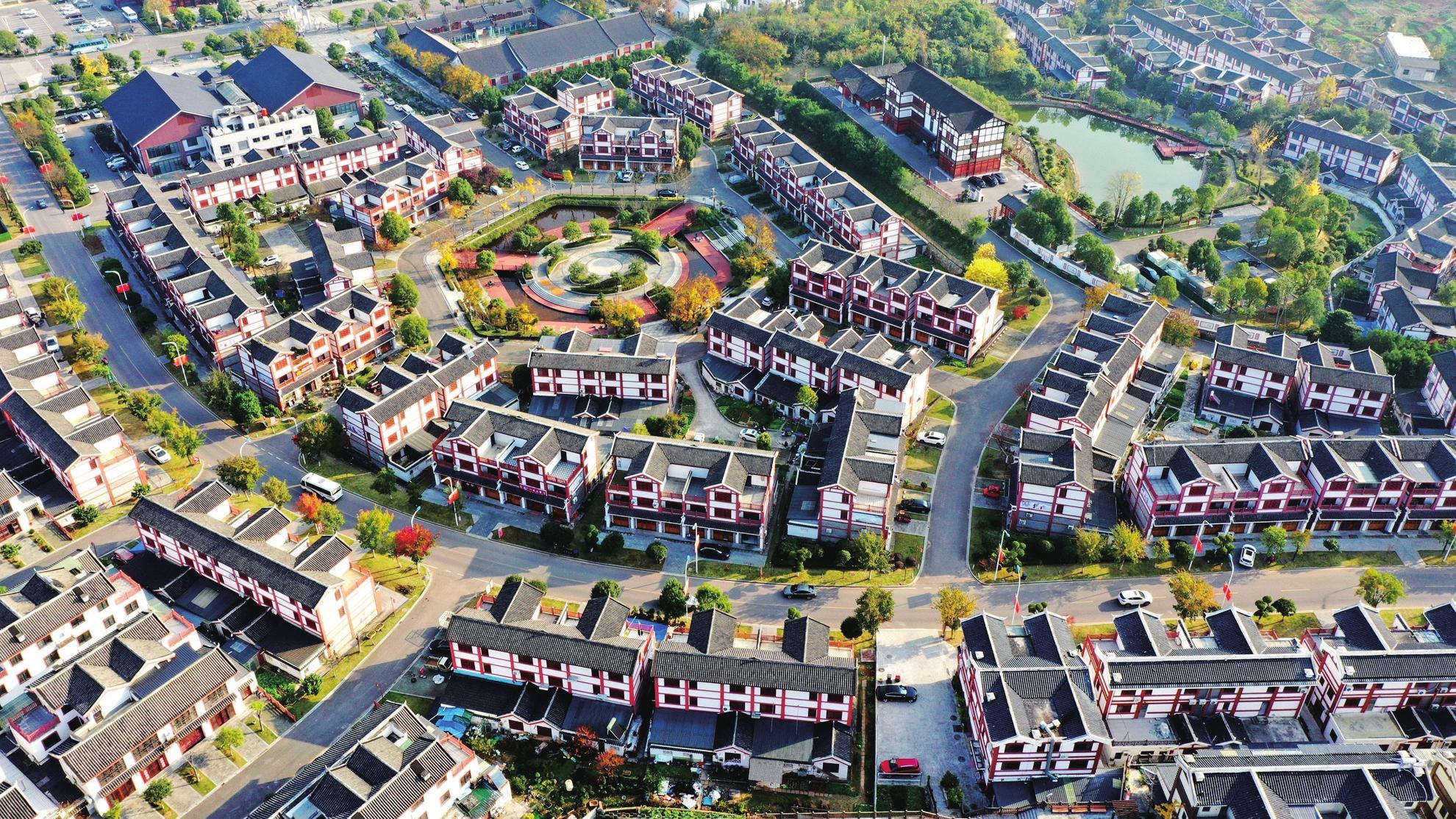 12月2日,宜都市高坝洲镇青林寺村,一栋栋整齐划一的农村别墅构成乡村美丽新画卷。