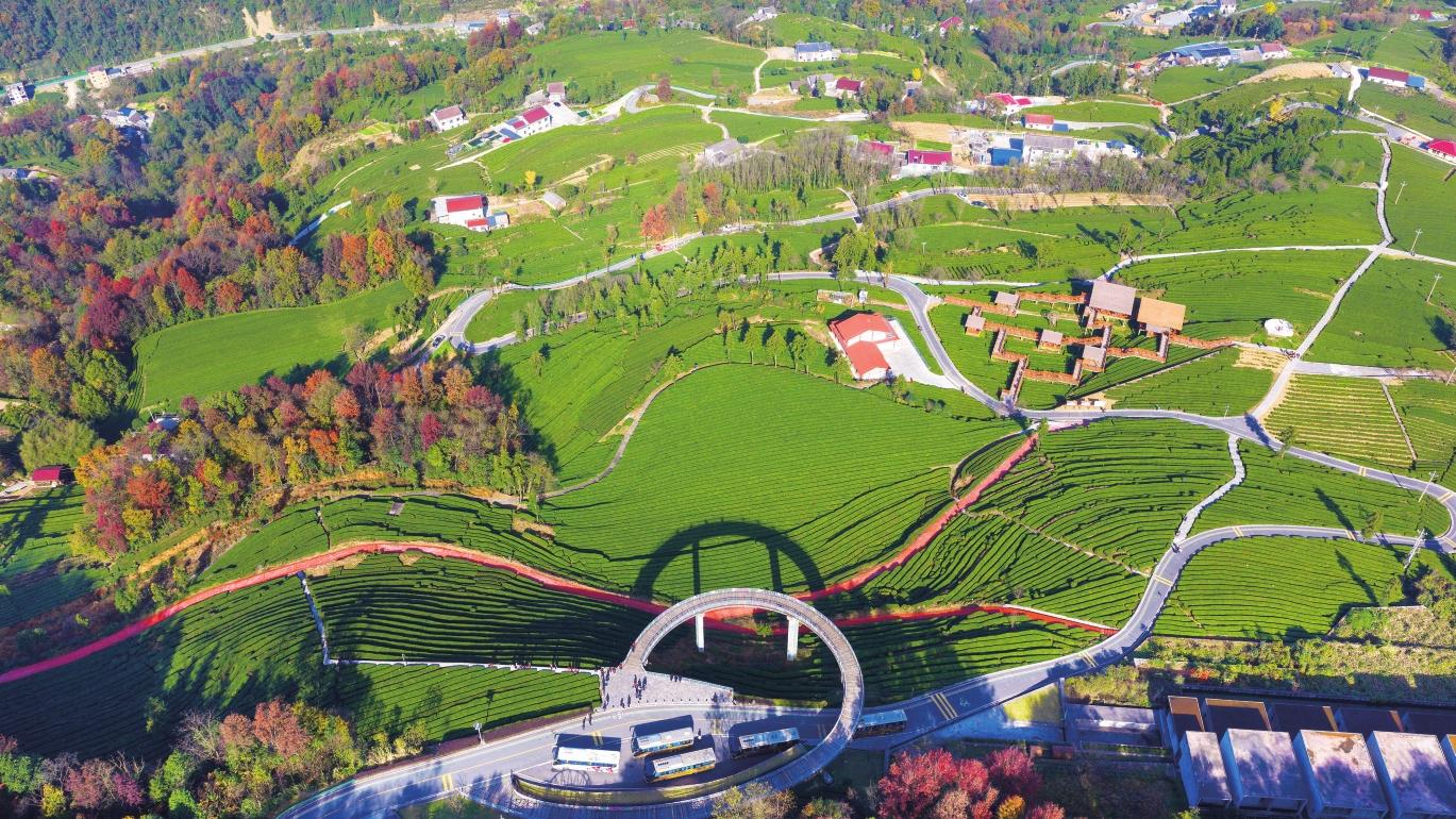 11月27日,五峰土家族自治县渔洋关镇青岗岭茶园,农村公路纵横交错,通户入园,勾勒出“路通业兴、景美人和”的乡村图景。