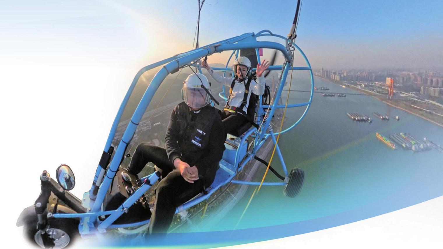 “同意飞行!”12月7日,得到宜昌空管站的回复后,一架大型双人轮式动力伞从位于点军区艾家镇艾家村的祥明航空艾家鼓浪屿飞行基地平稳升空。