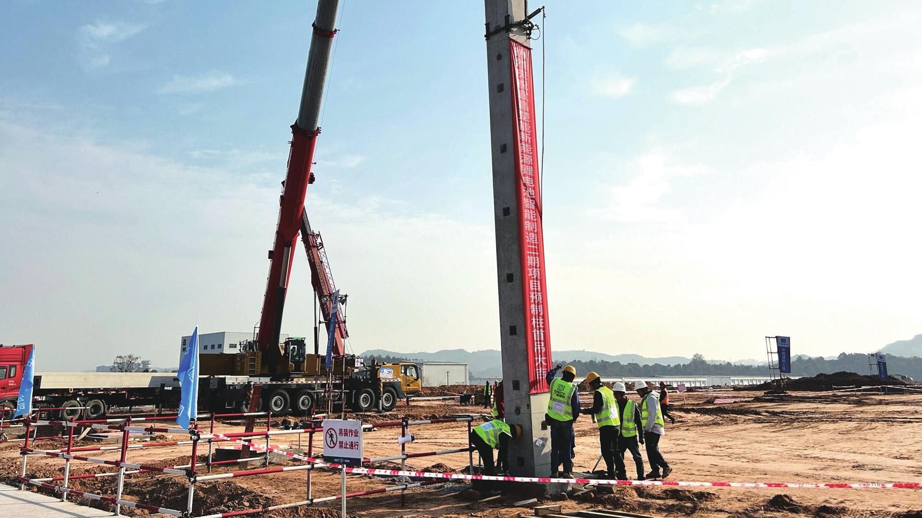 “开始吊装。”12月9日上午,随着一声令下,楚能新能源宜昌80GWh全新一代锂电池项目工地,一根重达9.5吨、高10米的预制柱被缓缓吊起,稳稳嵌入预埋套筒,标志着该项目正式从地下基础施工迈入地上主体结构建设的全新阶段,向着2026年春节前主体封顶的目标全速推进。