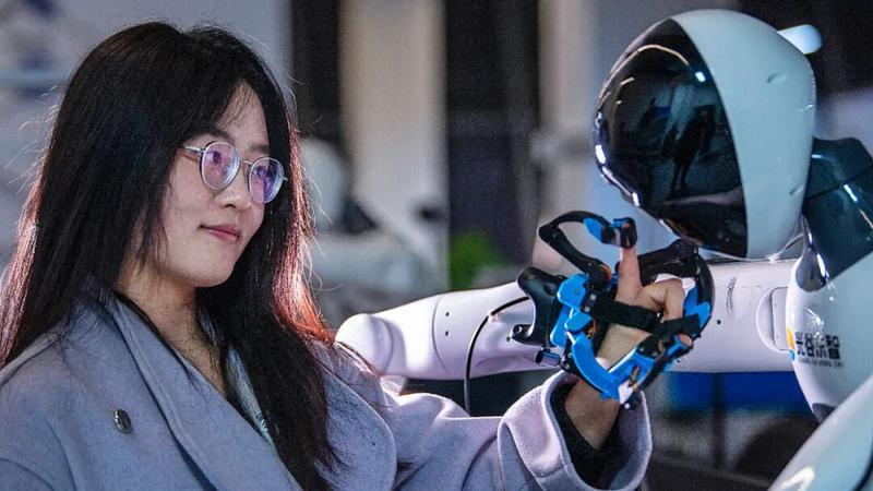 12月24日,湖北人形机器人创新中心,几台机器人正在练习商品抓取。