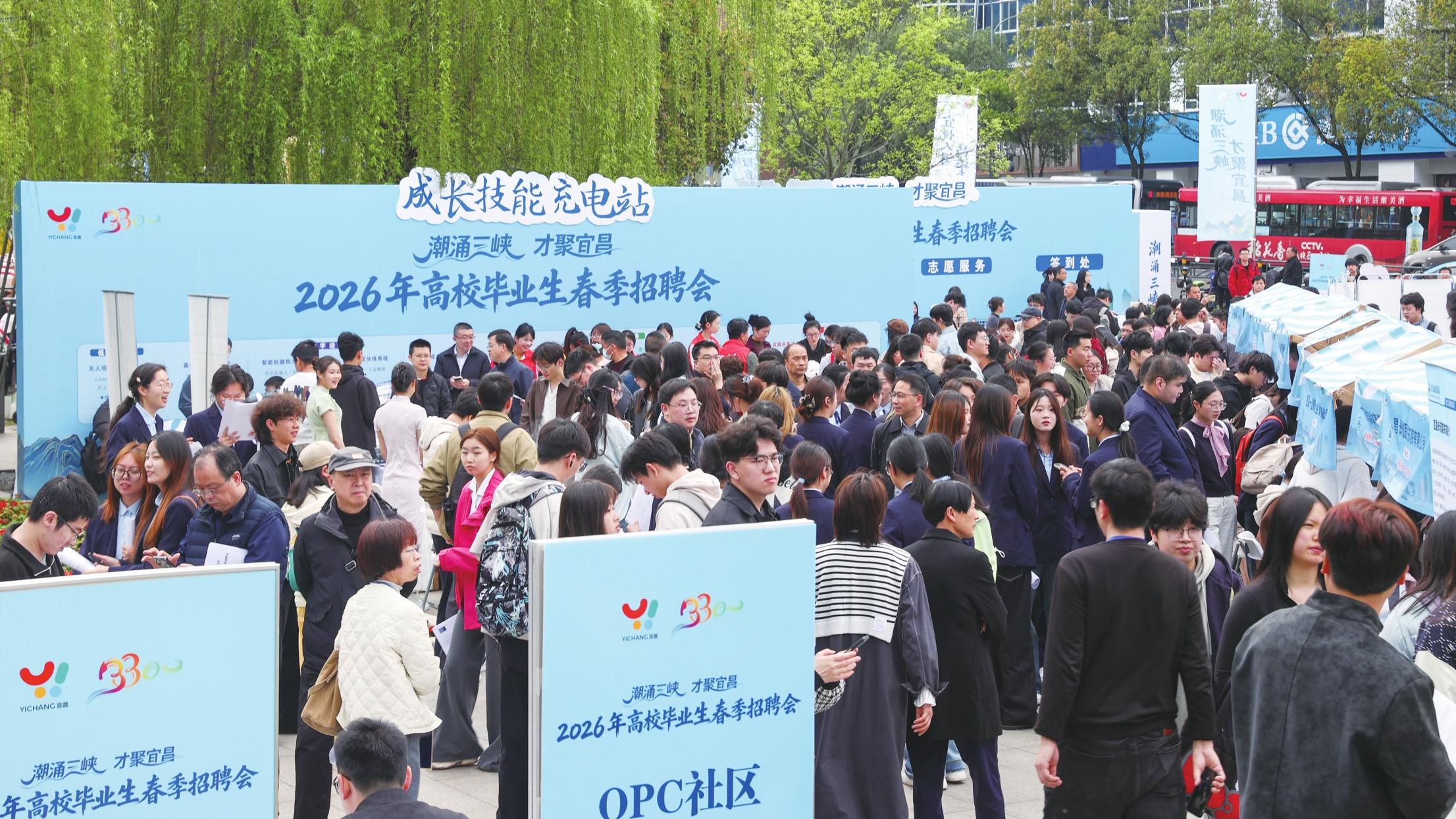 3月31日,“潮涌三峡·才聚宜昌”2026年高校毕业生春季招聘会在宜昌城区儿童公园南门草坪开启。