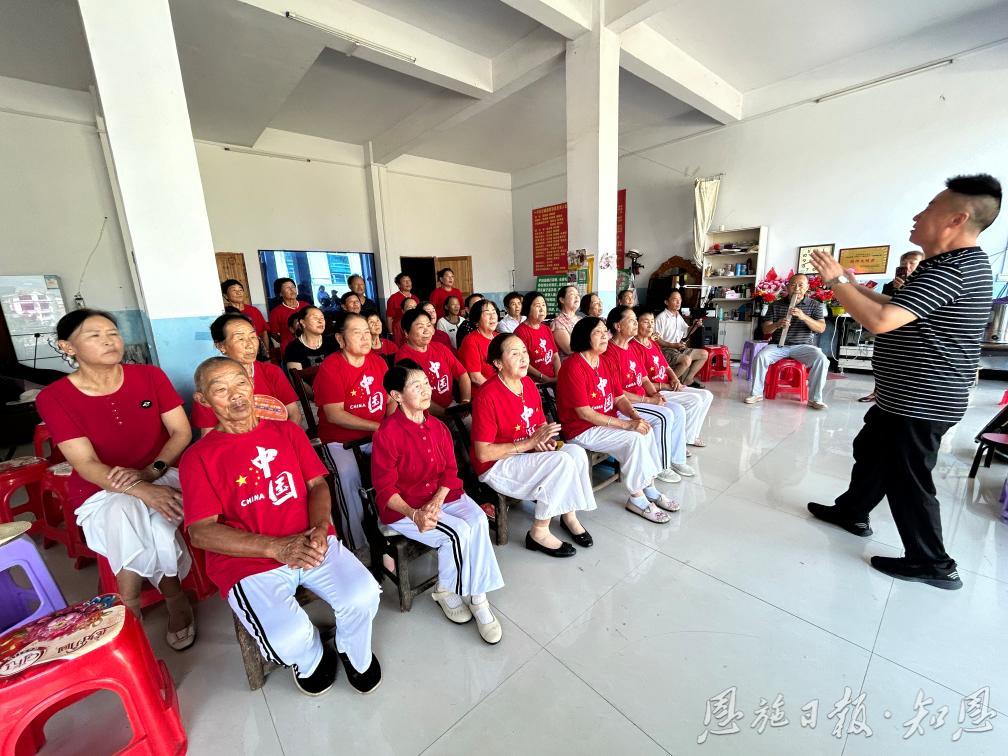10月27日,清晨的鹤峰县走马镇唐人步行街,57 岁的周进清手持渔鼓筒,带着“一片红合唱团”的队员们唱起自编的文明小调。