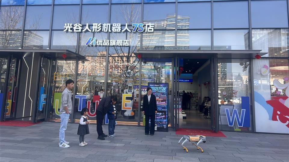 春节假期的武汉光谷,全国首家人形机器人7S店内人声鼎沸。