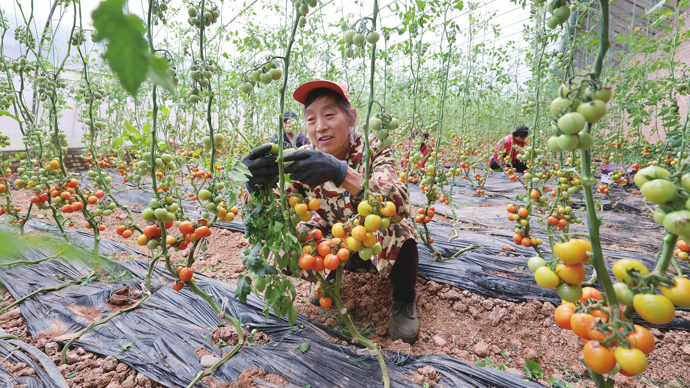3月6日,农户正忙着养护“水果”小番茄。春回地暖,万物复苏。