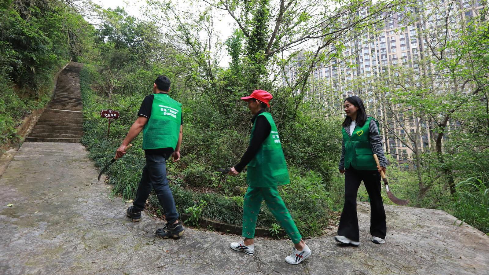 日前,西陵区窑湾街道“御林军”志愿服务队在御景天地小区后山公园开展巡山护林活动。