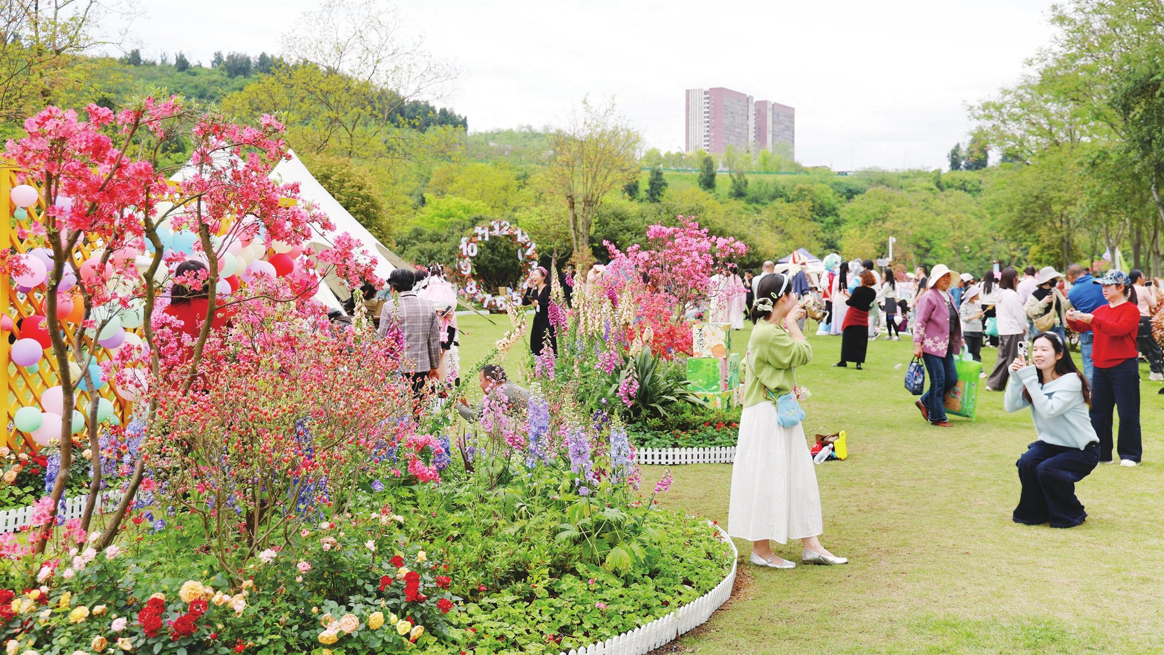 4月12日,伍家岗区柏临河湿地公园杜鹃花展迎来最佳观赏期,吸引大批游客打卡。