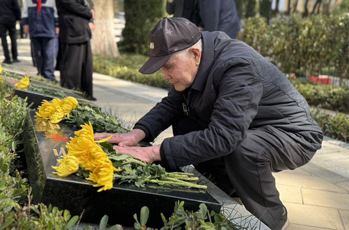 3月31日,清明节前夕,湖北黄冈市黄州区堵城镇外岭村的群众自发在村支书吴劲松的墓前沉痛地悼念。