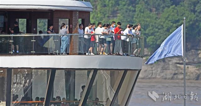 8月3日清晨,成群的野生江豚在长江宜昌段西坝庙嘴处嬉戏,这群国宝级的水中“微笑天使”吸引了不少摄影爱好者与旅游者。随着长江生态的持续向好,宜昌长江江段可以观测到的江豚数量逐年增加,憨态可掬的江豚如今成为宜昌旅游的一张新名片。(湖北日报全媒记者 刘曙松 摄)