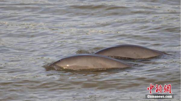 江豚很少跃出水面,仅背脊露出江面。赵明 摄