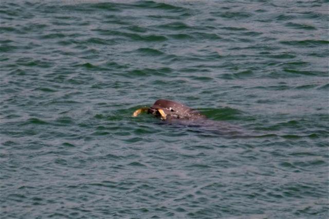 宜昌市民杨河,是CCF生态保护摄影爰好者,近几年专注于拍摄宜昌江段的江豚。他告诉极目记者,他拍到过恋爱的江豚、怀孕的江豚、初生的小江豚。4月30日,他的镜头中再添珍贵画面——一对江豚夫妇带着小江豚,一家三口合围捕鱼。当天下午,杨河在葛洲坝下游江段点军岸边,用长镜头清晰地拍到,大江豚将鱼咬伤后投喂给江豚宝宝。江鱼的品种也很丰富,江豚捕到鱼有时连他也认不出来。
