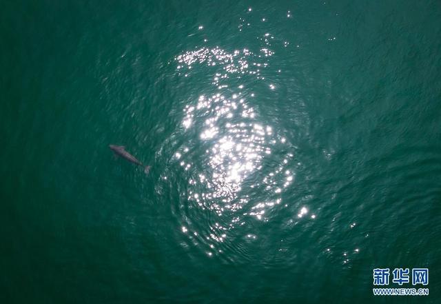 5月11日,在湖北省宜昌市江边,长江江豚在水中嬉戏(无人机照片)。