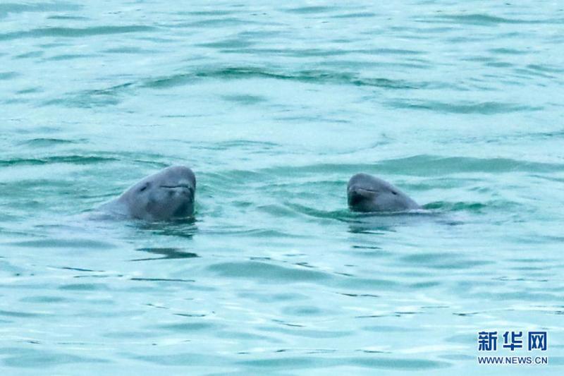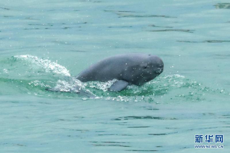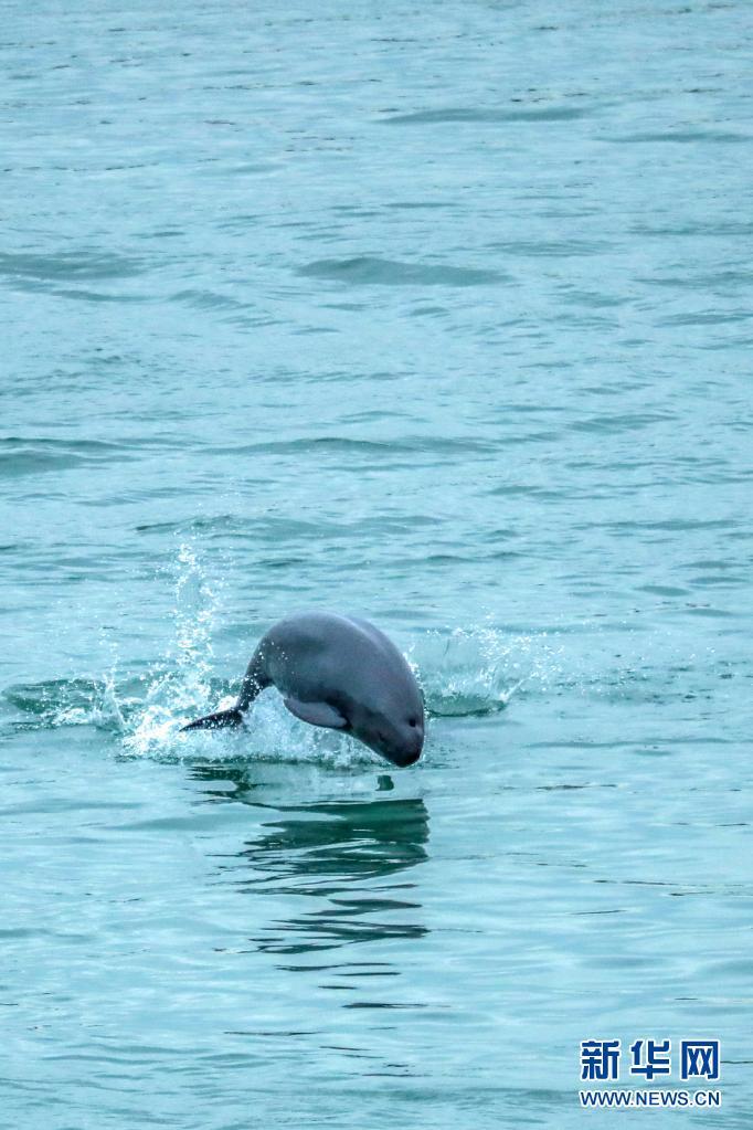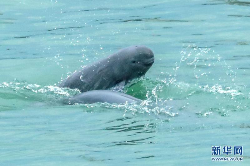 5月16日,长江江豚在湖北省宜昌市葛洲坝下游水域逐浪嬉戏。