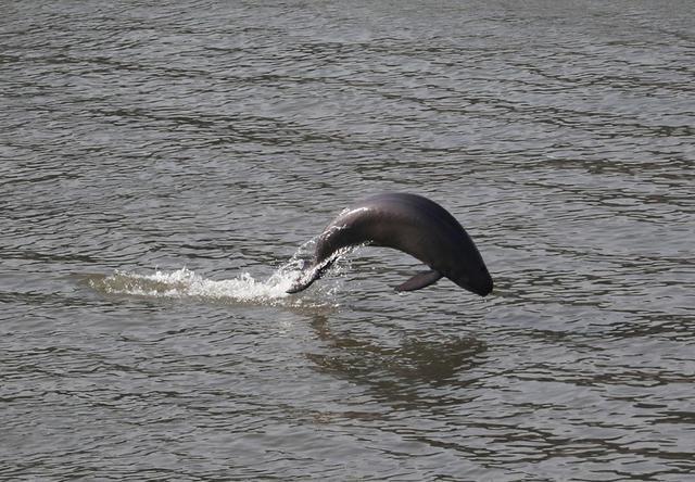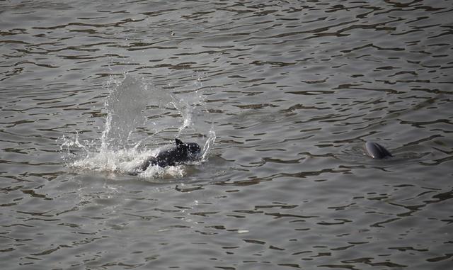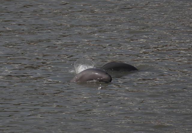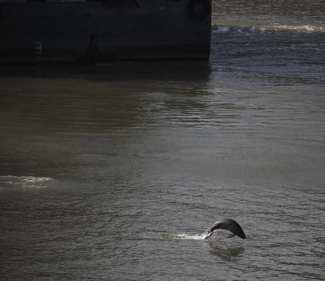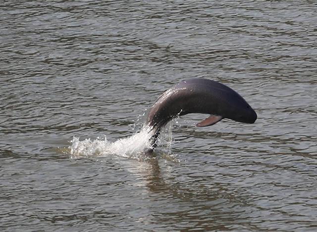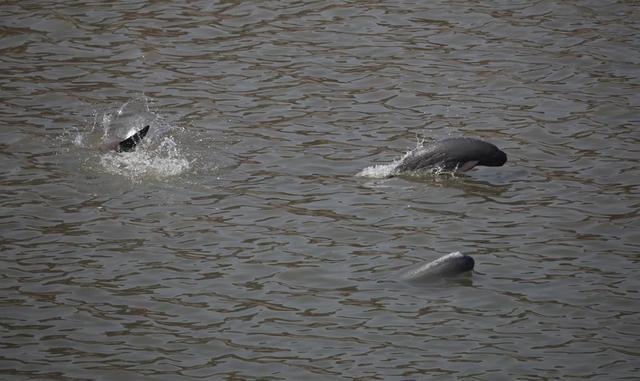 2021年1月17日,冬日的湖北宜昌天气晴好。成群的江豚在宜昌庙嘴、三江江面逐浪嬉戏,还不时在航船过境掀起浪涛时竞相在江面跳跃竞技,这一幕幕精彩的瞬间,引众多摄影师们长焦热拍。赵志杰摄(视觉中国)