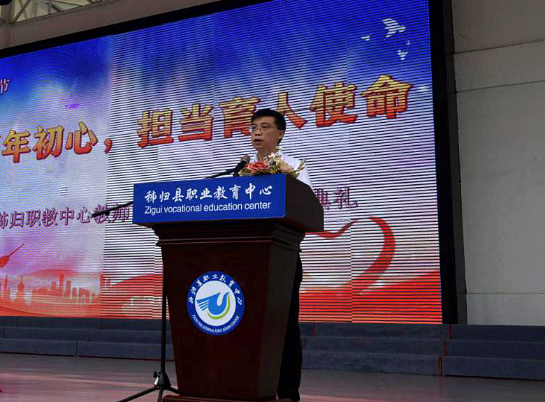 9月9日,秭归县职业教育中心以“赓续百年初心,担当育人使命”为主题,举行第37个教师节庆祝大会暨2021年秋季学期开学典礼,副校长谭家红主持活动,全校2000余名师生接受思想洗礼。