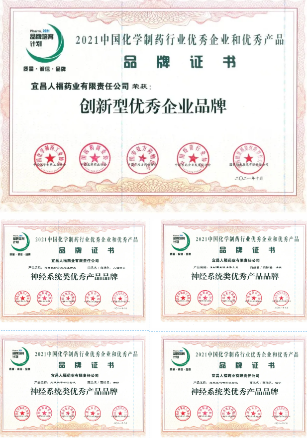 宜昌人福药业凭借过硬的创新实力荣获“创新型优秀企业品牌”称号。同时,在“2021中国化学制药行业优秀产品品牌”板块中,公司枸橼酸舒芬太尼注射液(人福舒芬)、注射用盐酸瑞芬太尼(瑞捷)、盐酸纳布啡注射液(瑞静)和盐酸氢吗啡酮注射液(锐宁)四个产品荣获“中国化学制药行业神经系统类优秀产品品牌”称号。副总裁符义刚代表公司出席会议并领取行业协会颁发的各项证书。