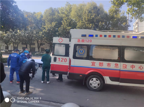 2021年11月14日,宜昌市急救中心和宜都市急救中心、武汉市急救中心联动,调度指挥武汉亚心总医院空中急救站和宜都市急救中心第一人民医院急救站进行无缝对接跨越312公里 ,圆满完成省、市、县三级联动空中救援脑干出血病人的任务。