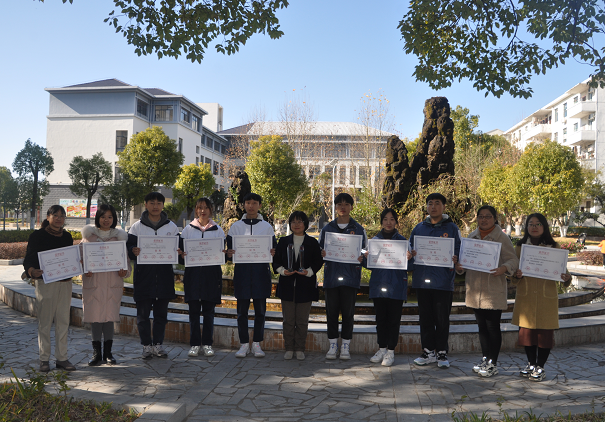 由陈东锐、陈悦婷、周华梁三名同学组成的参赛团队“三人行石艺工坊”斩获金奖,由曾濛瑶、刘跃、程孜涵三名同学组成的参赛团队“神农生态育苗基地”荣获银奖,孙巧茹、丁宏芳两位老师喜获“优秀指导教师”。