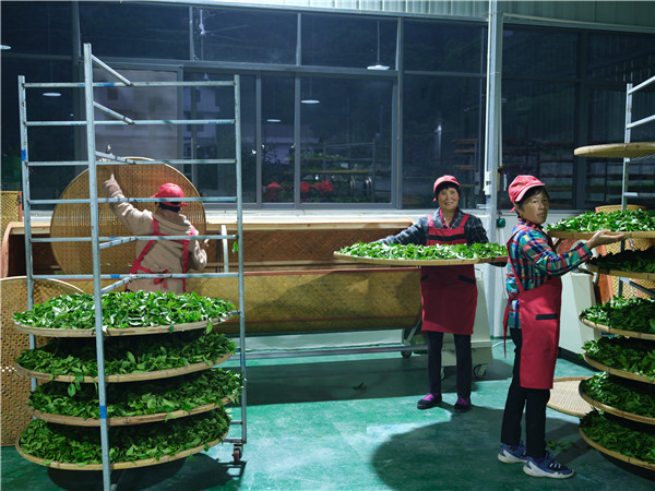 2022年5月10日,宜都金萱蔬菜专业合作社的高山乌龙茶开园制茶。宜都金萱蔬菜专业合作社理事长杜永军特地请来了有六代制茶经验的台湾乌龙茶制作大师,以及来自福建的专业制茶师傅现场严格把关制作,位于梁山脚下的制茶车间里不断飘出阵阵茶香。