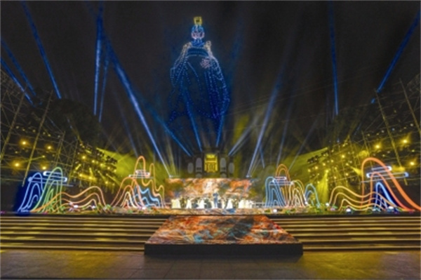 夜空中,1000架无人机在高峡平湖之上,幻化出峨冠博带的屈原形象、飞舞的楚国凤凰……3个篇章20余幅图像依次立体呈现,美轮美奂,耀眼夺目。