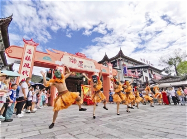 恩施女儿城内非遗展演。林芳 摄