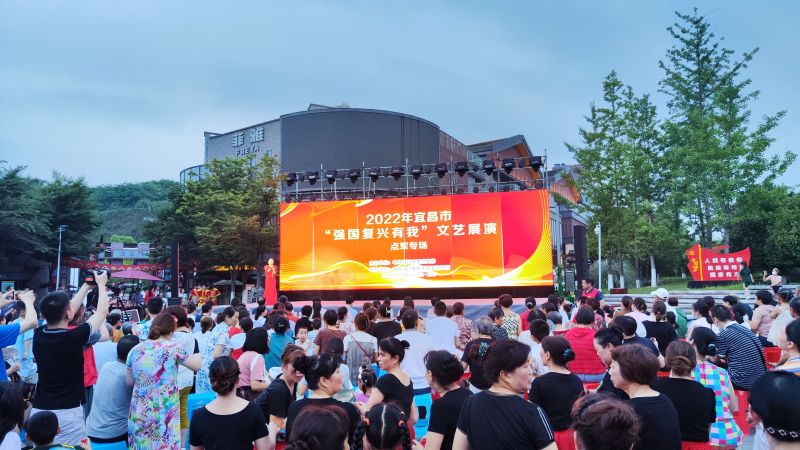 6月30日,2022年宜昌市“强国复兴有我”文艺展演点军专场活动在点军街办朱市街社区URD广场举行。本次活动以“强国复兴有我”为主题,以歌舞、小品等多种喜闻乐见的表演形式,为迎接党的二十大胜利召开营造了浓厚的社会氛围。
