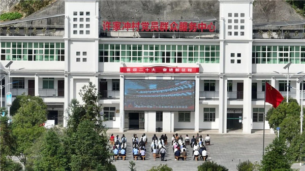 10月16日上午,夷陵区太平溪镇许家冲村的党员、干部、群众及镇直单位代表在村党员群众服务中心广场,集中收听收看党的二十大开幕盛况。大家一致认为,党的二十大报告提到的“增进民生福祉,提高人民生活品质”令人十分振奋。