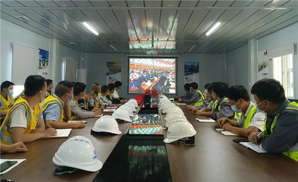 10月16日上午,邦普时代项目部组织员工收听收看了党的二十大开幕会直播,党的二十大报告提出高质量发展是全面建设社会主义现代化国家的首要任务,让项目建设者们备受鼓舞。