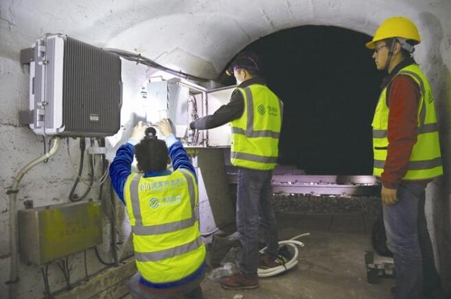 宜昌移动网络部工作人员正在宜万铁路施工洞安装设备