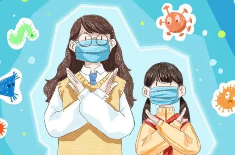 督促孩子做好防护,首先第一条就是要坚持佩戴口罩。