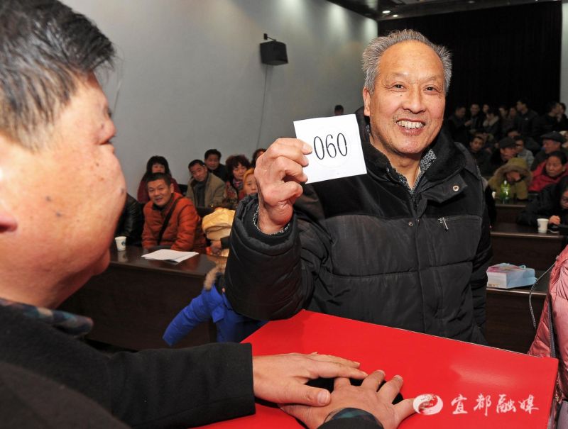 ▲2016年1月20日,松宜矿区棚户区的矿工们在公证人员的监督下参与经适房抽签分配。