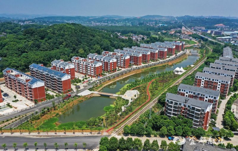 ▲航拍新建成的松宜矿区枝城镇赤溪河小区外景(2019年7月24日拍摄)