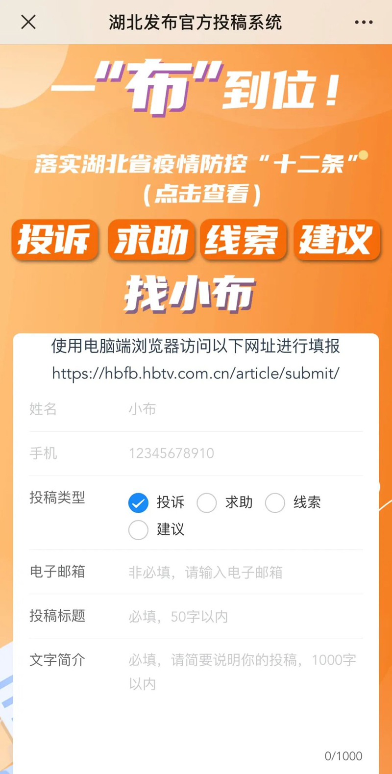 各位网友也可登录湖北省人民政府门户网站及湖北省卫健委官网《接诉即办专栏》,通过“我要写信”反映问题,提供线索。