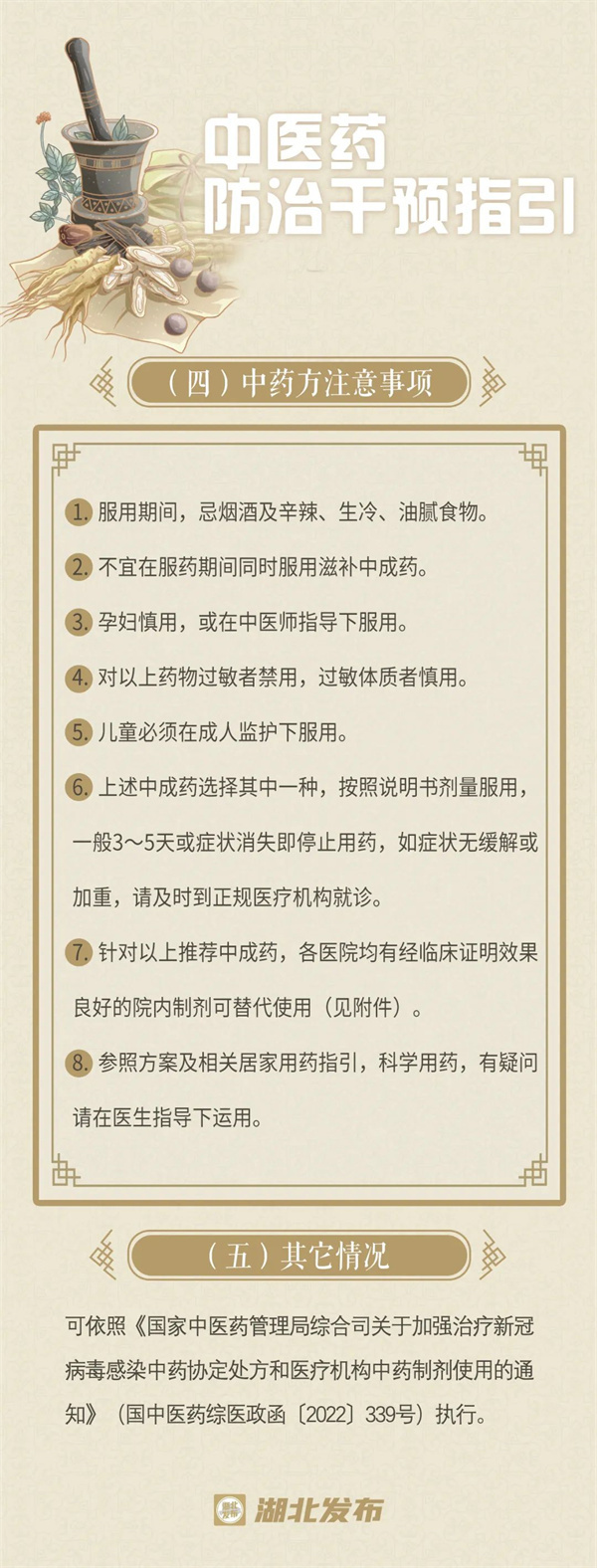 湖北省疫情防控指挥部办公室发布《关于进一步发挥中医药在新型冠状病毒感染救治工作中作用的通知》,要求高度重视当前在城乡社区进一步发挥中医药在新冠病毒感染救治中作用的重要性和紧迫性,充分认识中医药对新冠病毒感染早干预、早治疗、防重症、降死亡的重要作用,落实各级政府责任,健全工作机制,加强部门协调配合,细化工作措施,在新冠感染救治工作中彰显中医药特色和优势。