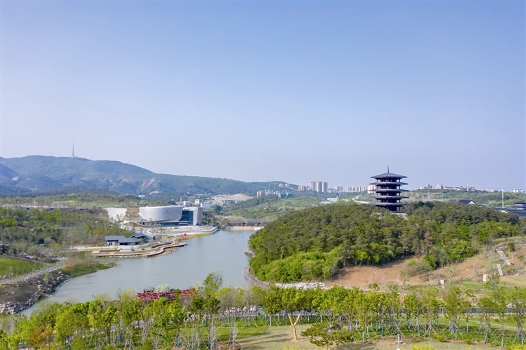昔日废弃煤矿采空区、建筑垃圾填埋场变成美丽的生态园博园。荆门日报 供图
