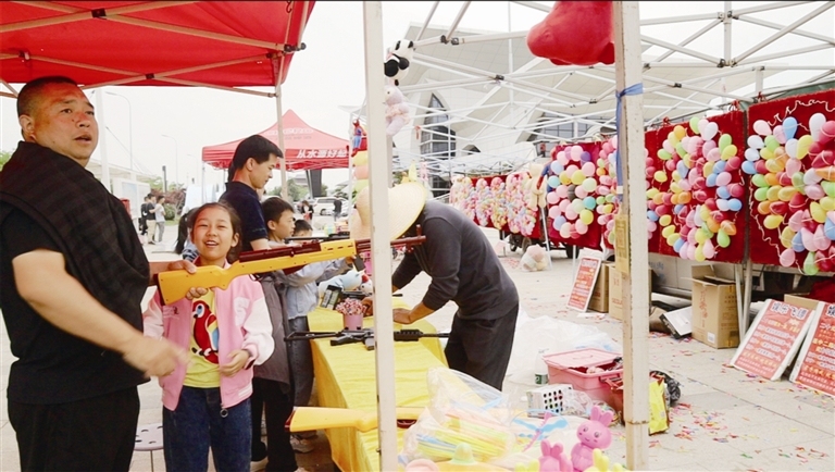 5月2日,在荆门国际卡丁车赛场门前,游客体验射击游戏。谢映秋 摄