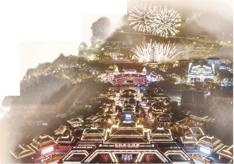荆州方特节庆广场上国风雅乐奏响古今。 张梦瑶 摄