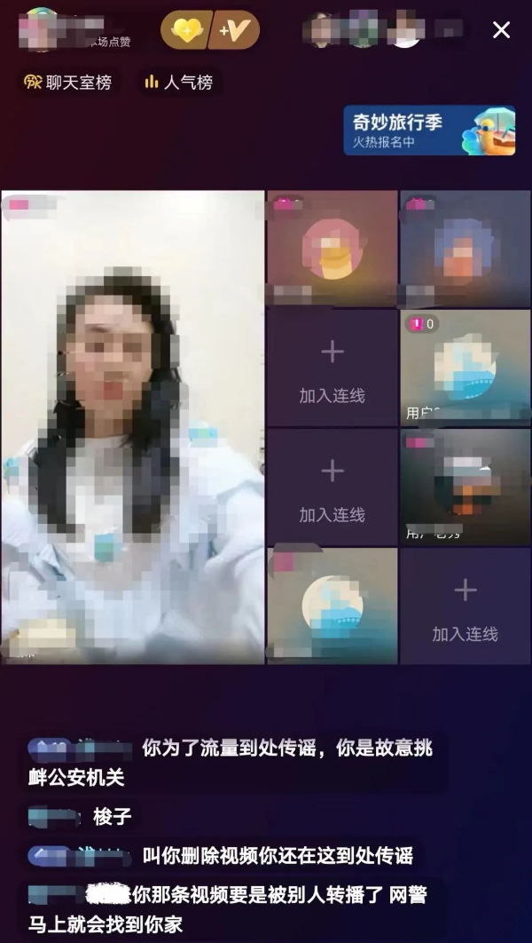 就在网安民警展开调查时,该网民还开启了视频直播,在直播间进行粉丝连麦。不少网民识破了她凭空捏造、张口就来的“善意提醒”,留言提醒。