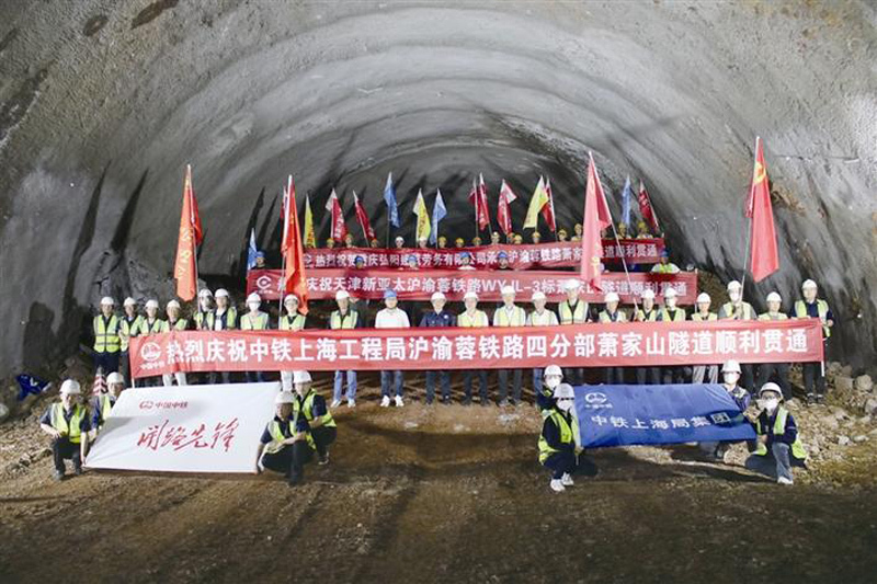 5月14日,历经390天的日夜奋战,由中铁上海工程局承建的沪渝蓉高铁武宜段WYZQ-3标萧家山隧道顺利贯通,这是沪渝蓉高铁武汉通往宜昌方向的第一座隧道。 李振武 摄