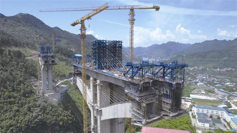 宜来高速鹤峰东段二标段云南庄特大桥总工程师刘鹏表示,“云南庄13号墩目前正在进行右幅上弦的11号块施工,14号墩正在进行右幅上弦9号块施工。”