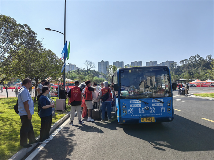 从宜昌市区火车站、汽车站、机场、码头的满载而归的迎新大巴,将来自全国各地31个省市的大学新生安全有序地送入校内下车点。身穿红马甲的大学生志愿者守候在下车点迎接新同学,帮助他们将笨重的行李转运到宿舍,带领他们办理报名手续,熟悉校园环境。校园竖立的超大幅迎新海报清新亮丽,打卡相框、励志标牌、免费的牛奶、矿泉水让学生、家长倍感暖心。
