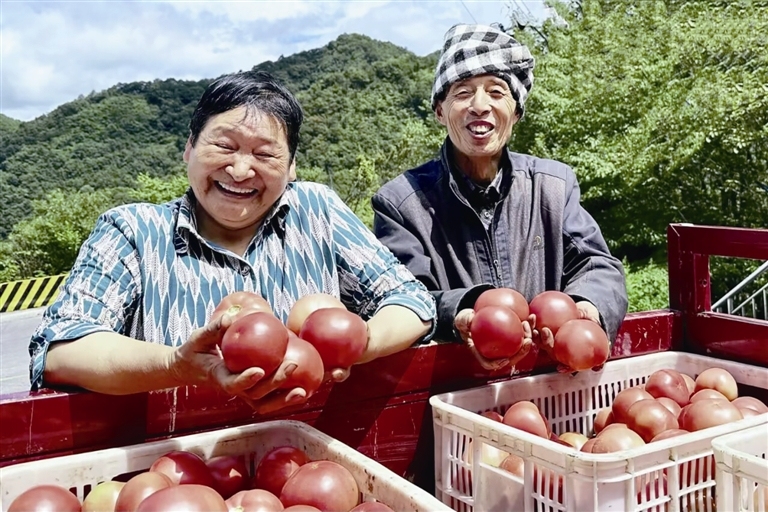 高山西红柿丰收,长阳文家坪菜农喜上眉梢。三峡日报全媒记者揭兴伟 通讯员 覃丹 摄