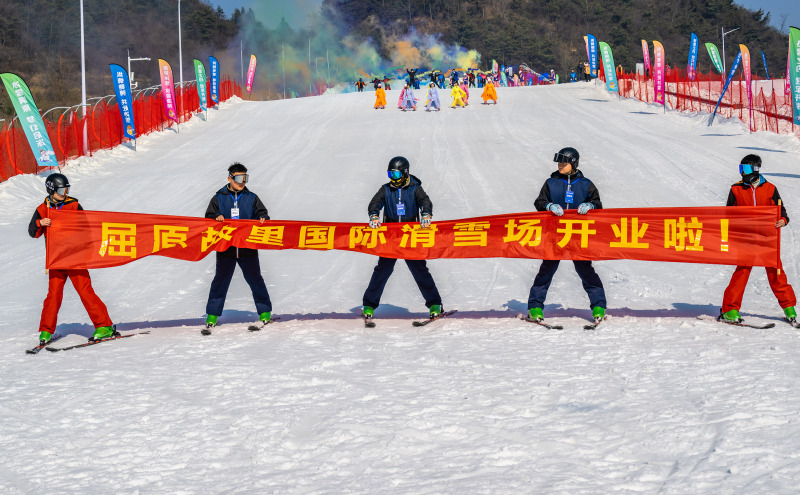 12月28日,距离三峡工程直线距离仅10余公里的屈原故里国际滑雪场举行开板仪式,顶级滑雪运动员、专业滑雪教练、滑雪爱好者共赴盛会,2000多人踏板而行、乘风驰骋,感受冰雪运动的速度与激情。