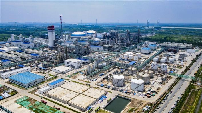 江陵新能源新材料产业基地的华鲁恒升荆州基地项目现场,塔吊林立、机械轰鸣,建设者们紧张有序忙碌着。 张梦瑶 摄