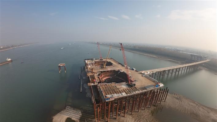 建设中的当枝松高速公路枝江长江大桥。宜昌市交通运输局 供图