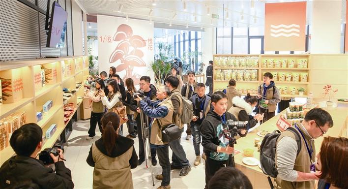 2023年12月5日,全省广播电视和网络视听行业职业技能大赛暨广播电视技术能手竞赛在荆门农谷·农创中心开赛。图为参赛选手通过参观中国农谷·农创中心,现场制作视频,向大众推荐“荆品名门”品牌。 宜荆荆恩主流媒体联盟·荆门日报记者郑波 摄