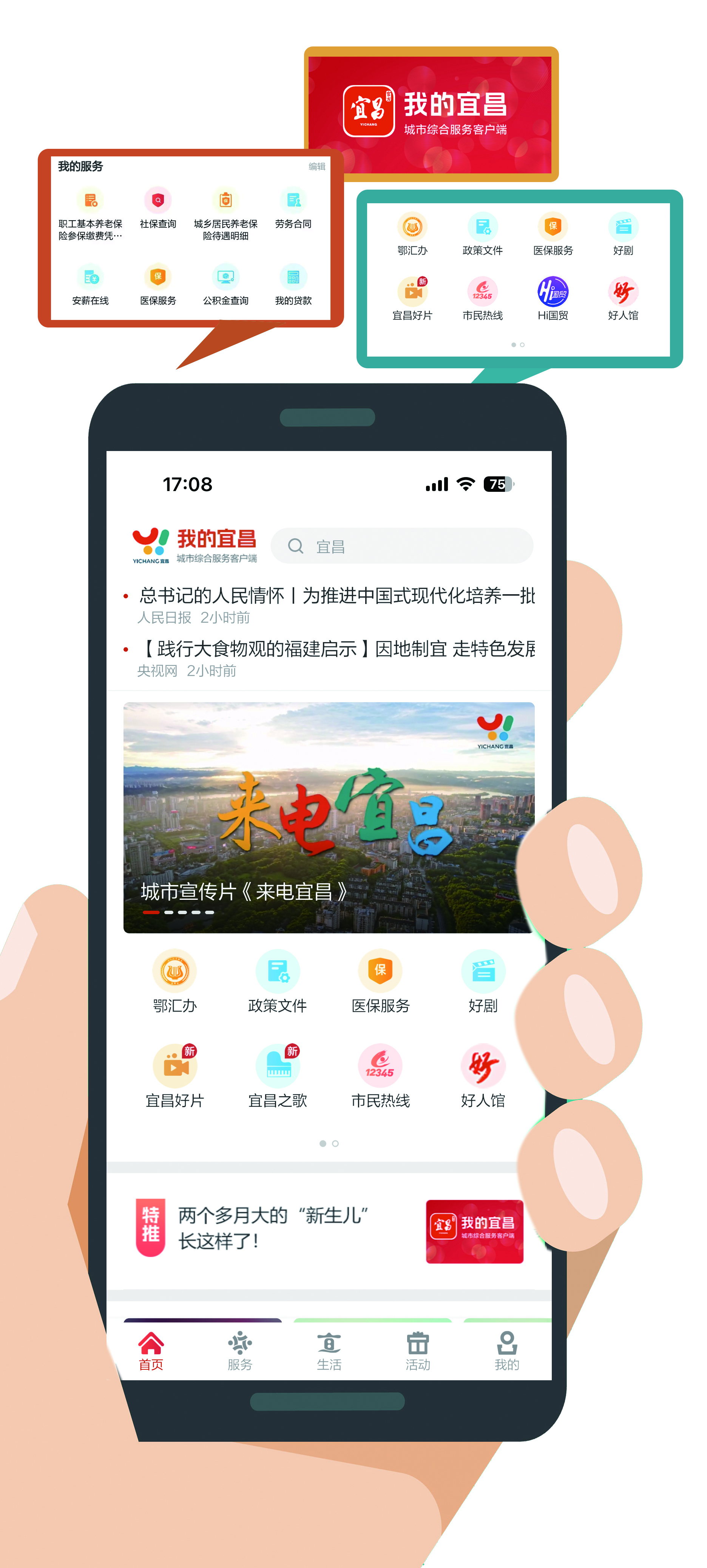 “我的宜昌”以“新闻+政务服务商务”为目标,奋力打造成为“在宜昌、来宜昌、爱宜昌”的首选信息平台。