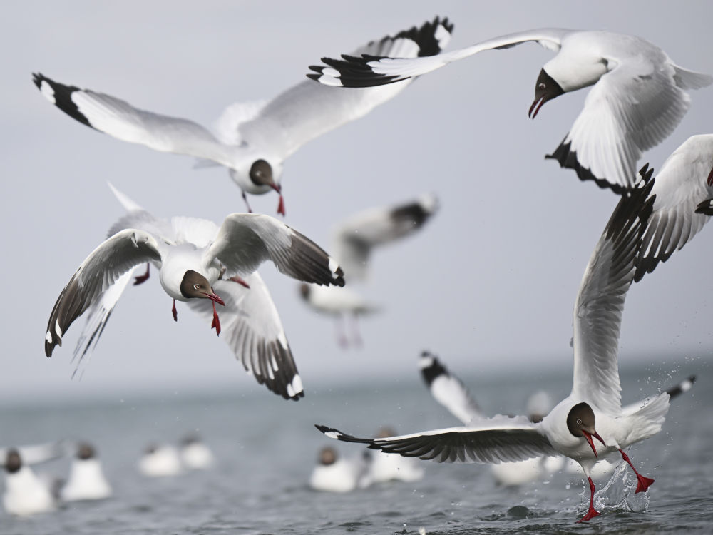 这是2023年4月13日在青海湖拍摄的棕头鸥。新华社记者 张龙 摄