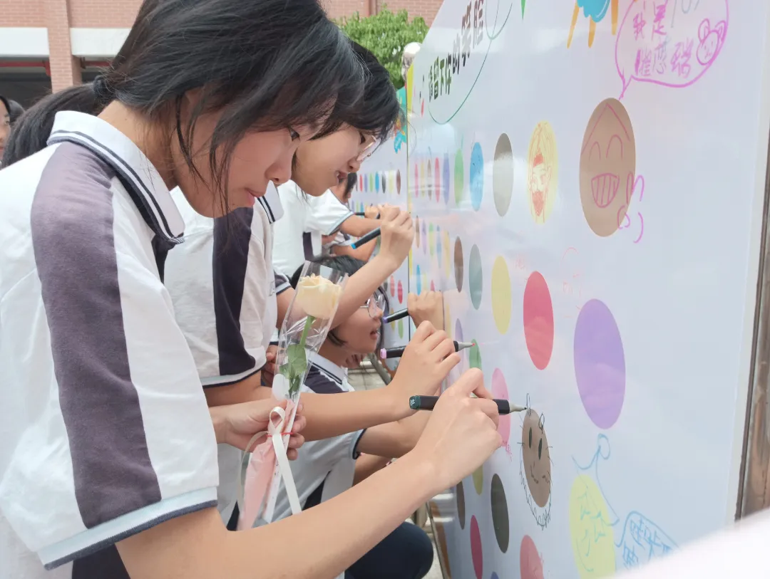 6月24日升旗仪式上,主题为“心沐阳光,共创未来”的国旗下演讲拉开了活动序幕。在下午举行的心理游园会上,学生纷纷在“dIY笑脸墙”签到,亲手绘画了专属自己的笑脸,并进行了“唱给你听”“放飞梦想纸飞机”“气球大作战”等生动有趣的活动。